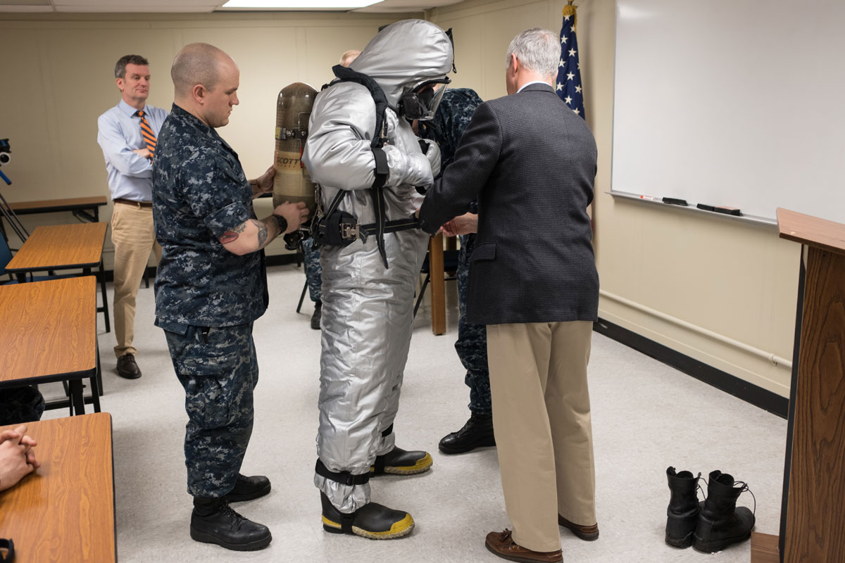 "In the unlikely event this piece of damage control equipment is needed, time is of the essence to protect not only the individual, but the entire boat," said ONR Command Master Chief Matt Matteson. "The new steam suit provides enhanced flexibility, maneuverability and ease of donning during such an emergency."