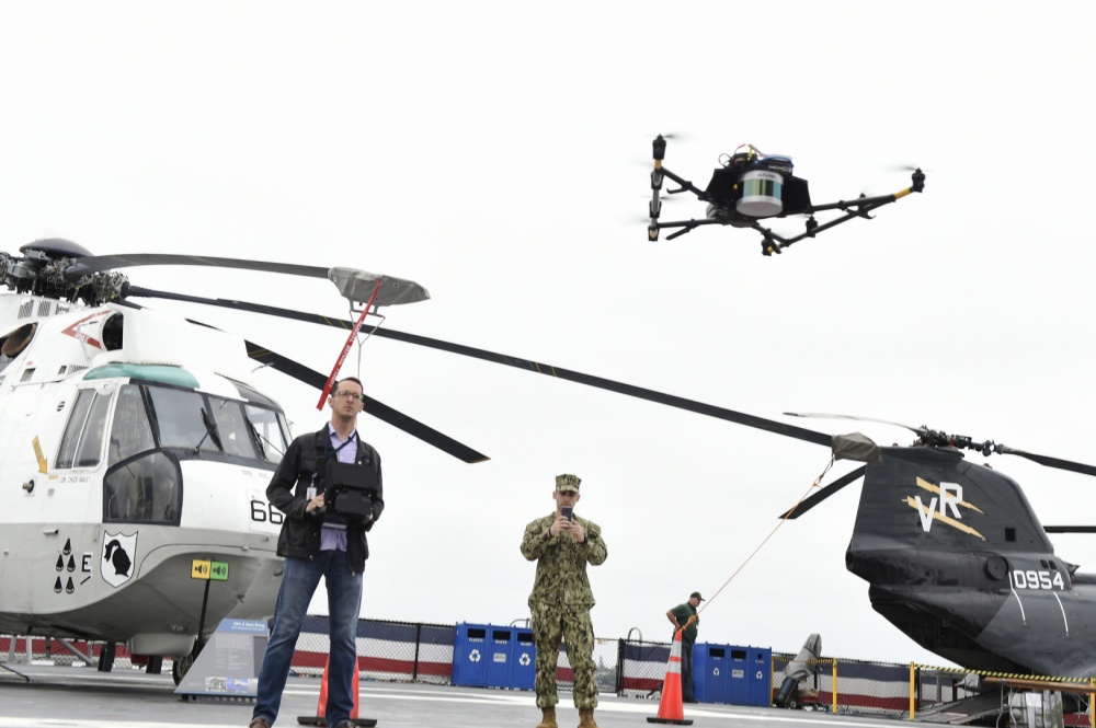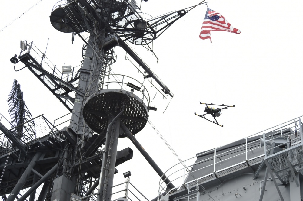"Sailors spend a lot of their time looking at different things on the ship, from corrosion to other equipment," said Dr. Mark Bilinski, Naval Information Warfare Center, Pacific and the integrated project team lead for topside drone. "A UAV can go around and take photos of the topside of a ship, collect that data quickly and autonomously, and then the data can be evaluated to identify if corrosion exists without tying up a Sailor's time."